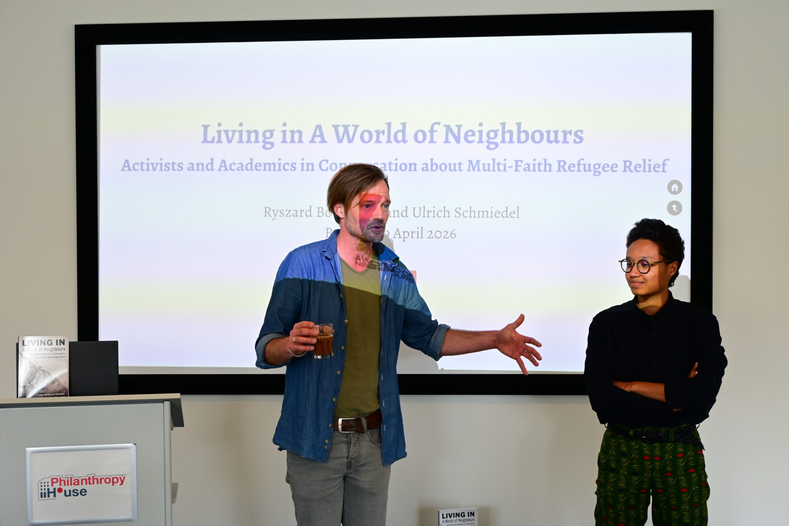 After much work and waiting, and with a lot of pride and excitement, AWoN scholar-partners, practitioners and friends gathered on April 9th at the Philantropy House, in the centre of Brussels, to celebrate the stories and knowledge gathered in Living in A World of Neighbours: Activists and Academics in Conversation about Multi-Faith Refugee Relief.
